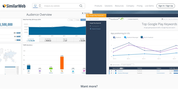 Что предлагают? Развернутую аналитику по сайтам и мобильным приложениям: трафик, ключевые слова, поисковый рейтинг, ранжирование в пределах страны или категории и многое другое.