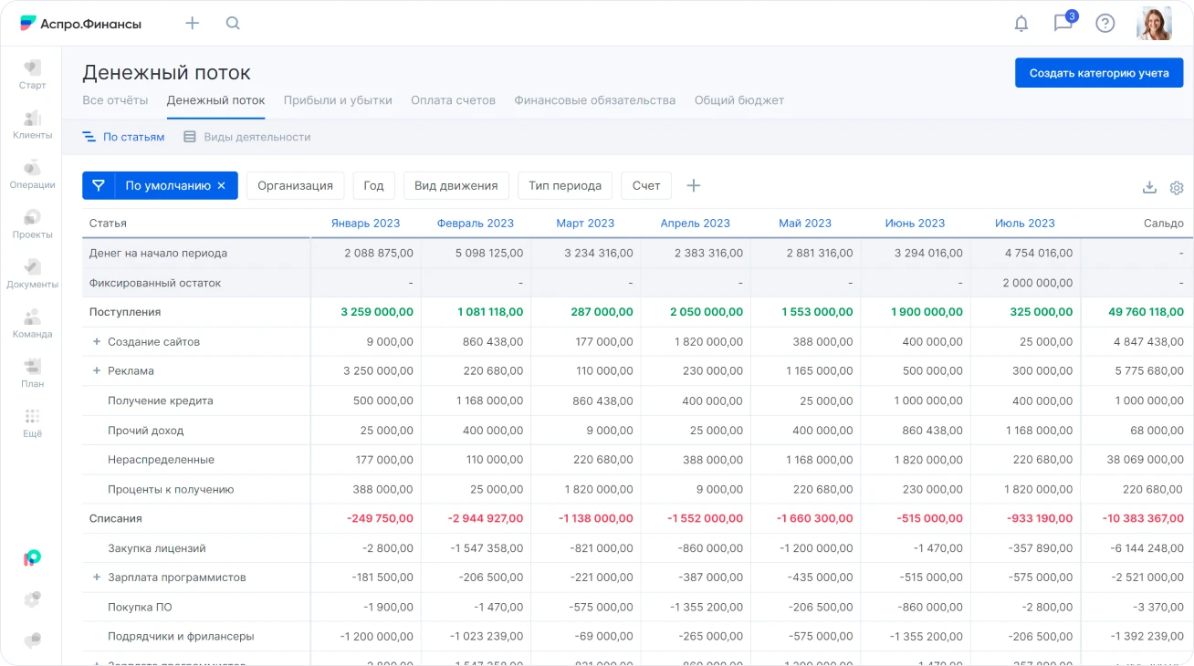 Отчет ДДС в Аспро.Финансы